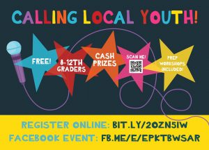 Students will prepare an ORIGINAL poem and PERFORM it LIVE at The River House on Sunday, May 16, 2021. The event will be open to an audience and held outdoors from 2-4 p.m. with a youth open mic to follow.